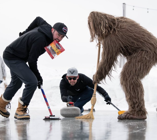 Sasquatch, John Landsteiner, John Shuster, and Chris Plys out on the ice.